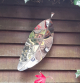 From the side view, the highly polished back of the leaf is visible, accentuating its elegant shape as it curves away from the wall.